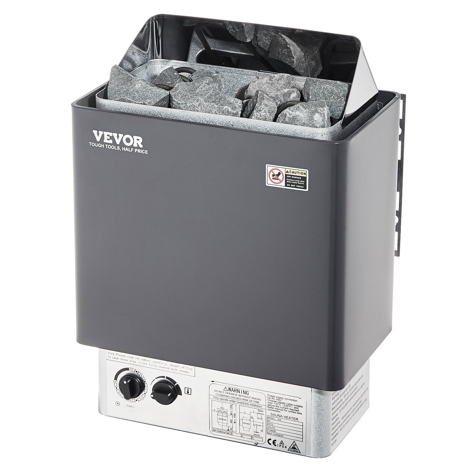 1.Fast Heating: Power: 4.5KW; Suitable Sauna Room: 105-210 cu.ft / 3-6 m3; Dimension: 16.1'' x 10.6'' x 22''. Sauna Stones Need: 33 lbs / 15 kg. Note: Sauna stones are NOT INCLUDED. The ample stone capacity allows the stones to absorb and store heat, ensuring effective heat retention and dispersion.